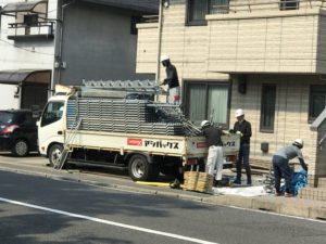 足場材料搬入足場組み 広島市南区リフォーム