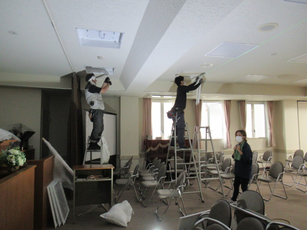 光町の某教会の工事は、1階~4階までのタイルカーペット貼替えが完了しました。