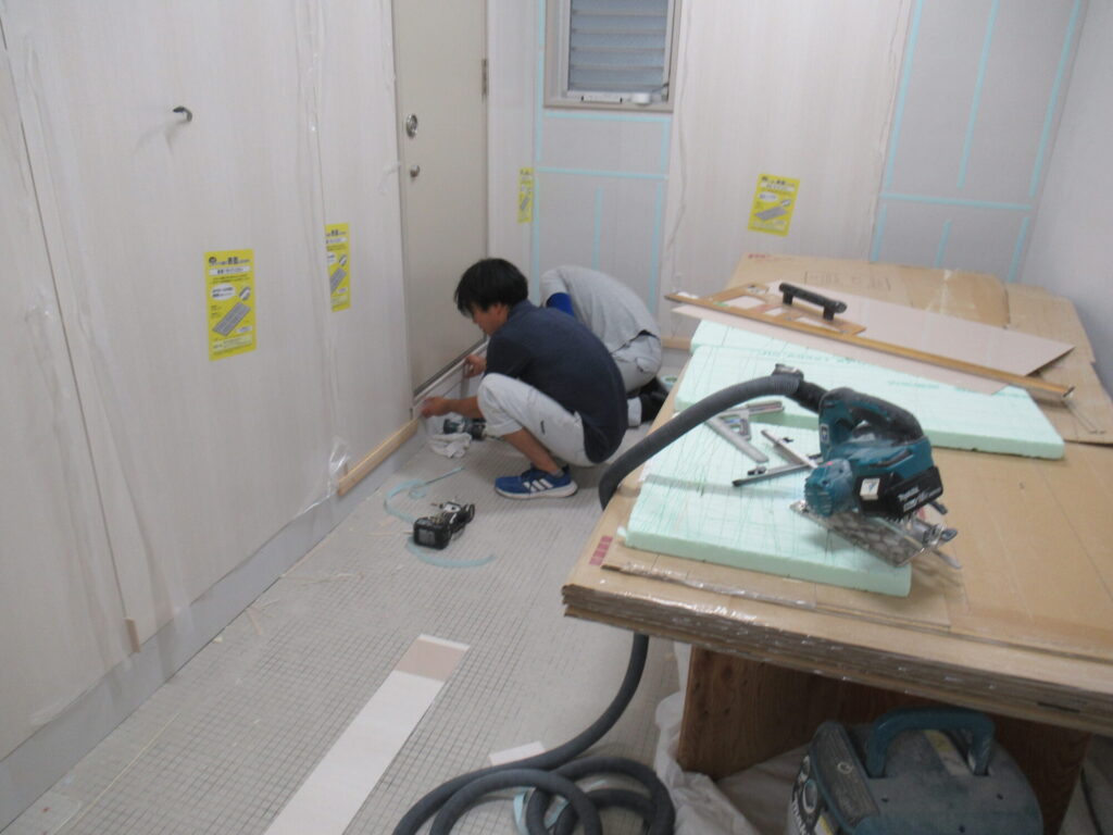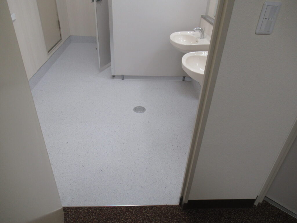 床は既存タイルの上カチオン処理をしてビニル床シートを貼りました。