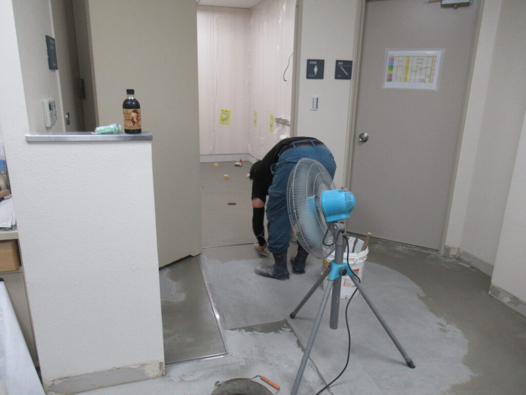 床貼りの後ブース等復旧や器具取付けを行いました。