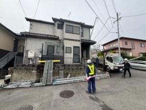 2024/05/17足場を組むのに既存のバルコニーを解体しました。 翌日に足場を組みました。