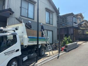 2024/05/18サイディングを新しく張り替えます。 既存のサイディングをバラしています。